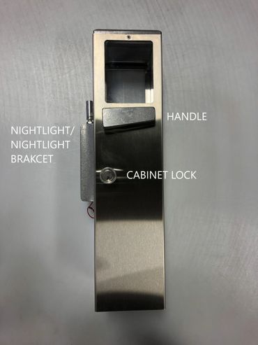 Note: For round units, first secure handle from covering the lock by using wire or string to hold it back or inserting a small block inside cabinet at inspection plate.