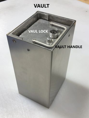 These units use front loading, self locking, Vaults with a wide carry handle.